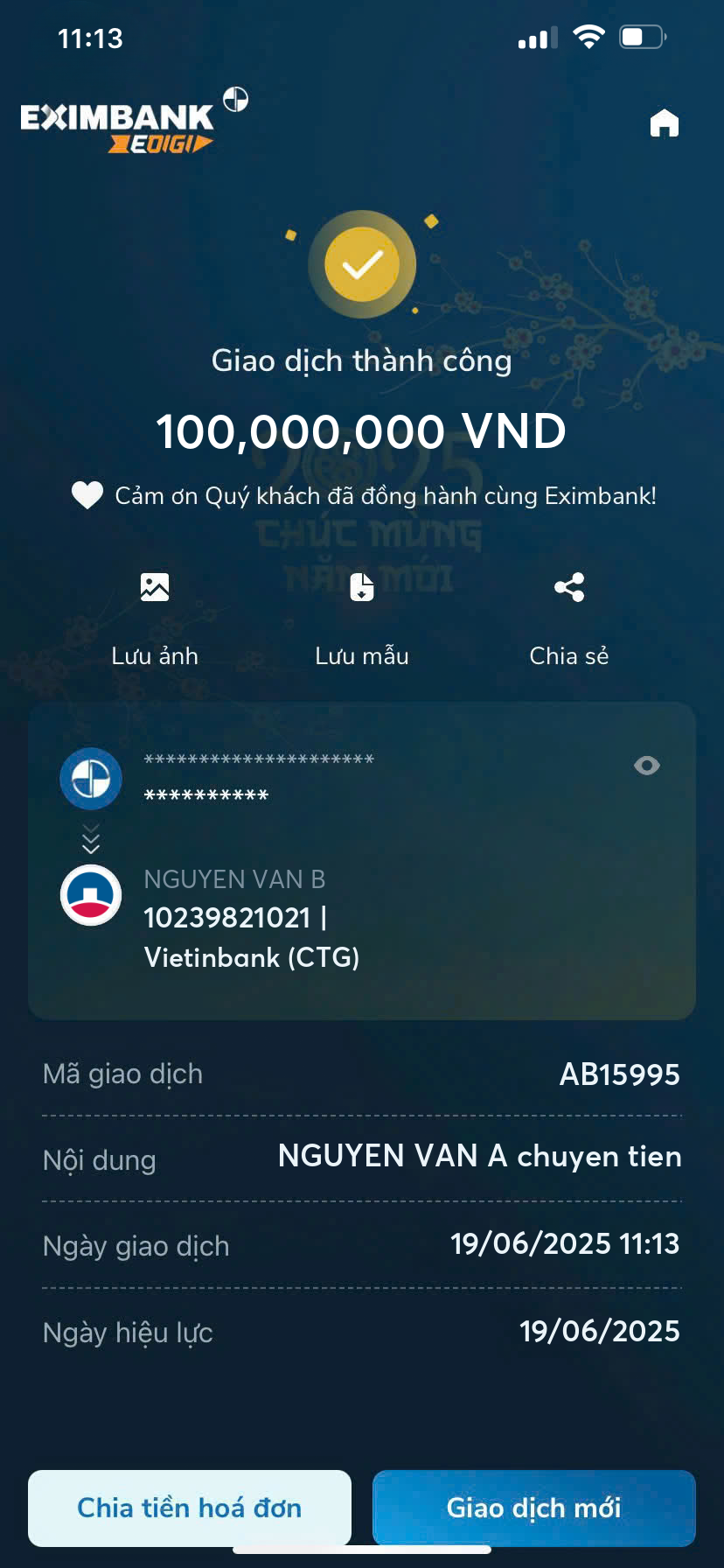 Tạo Bill Eximbank