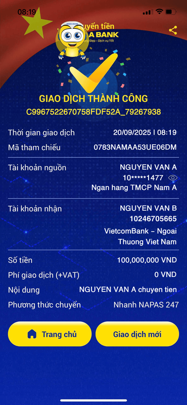 Fake bill chuyển khoản