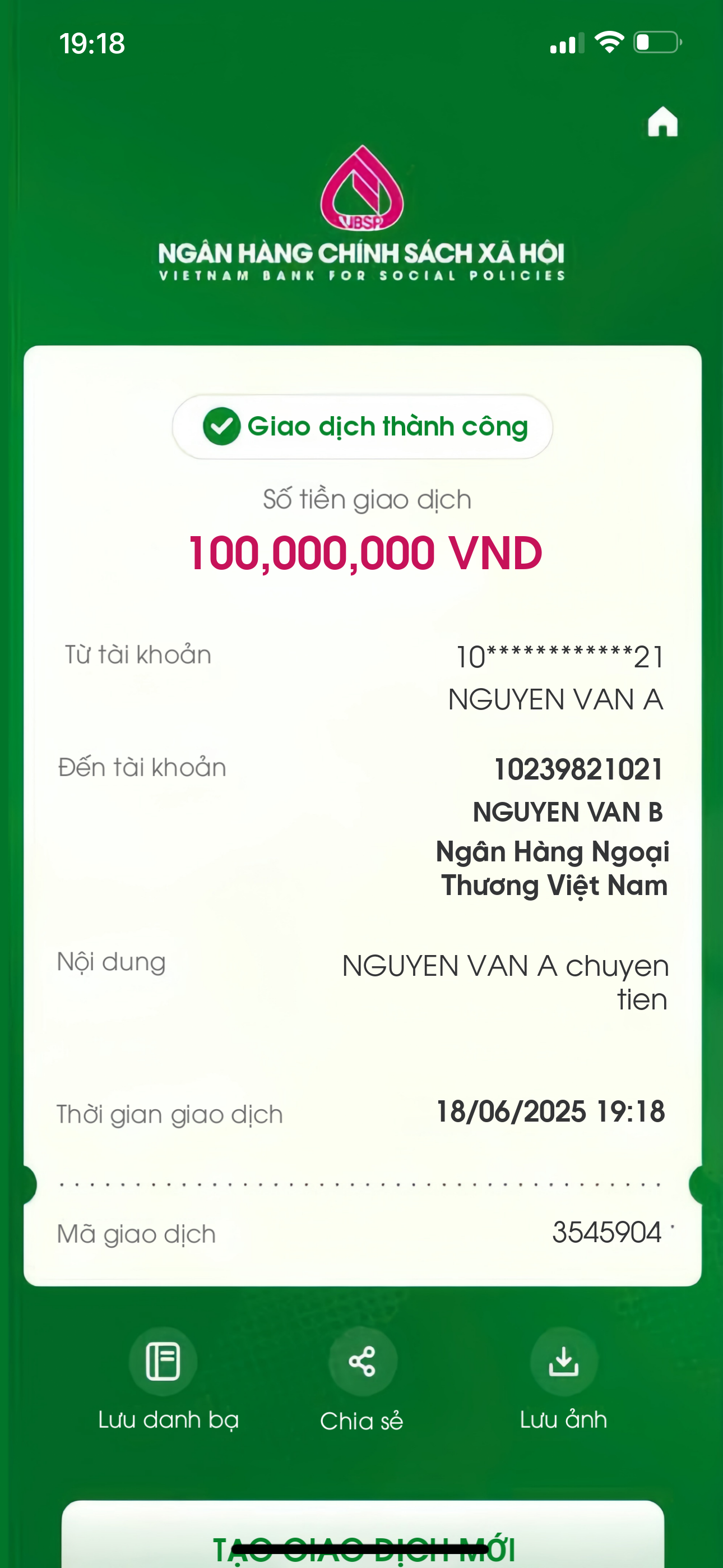 Tạo Bill Ngân hàng Chính sách xã hội